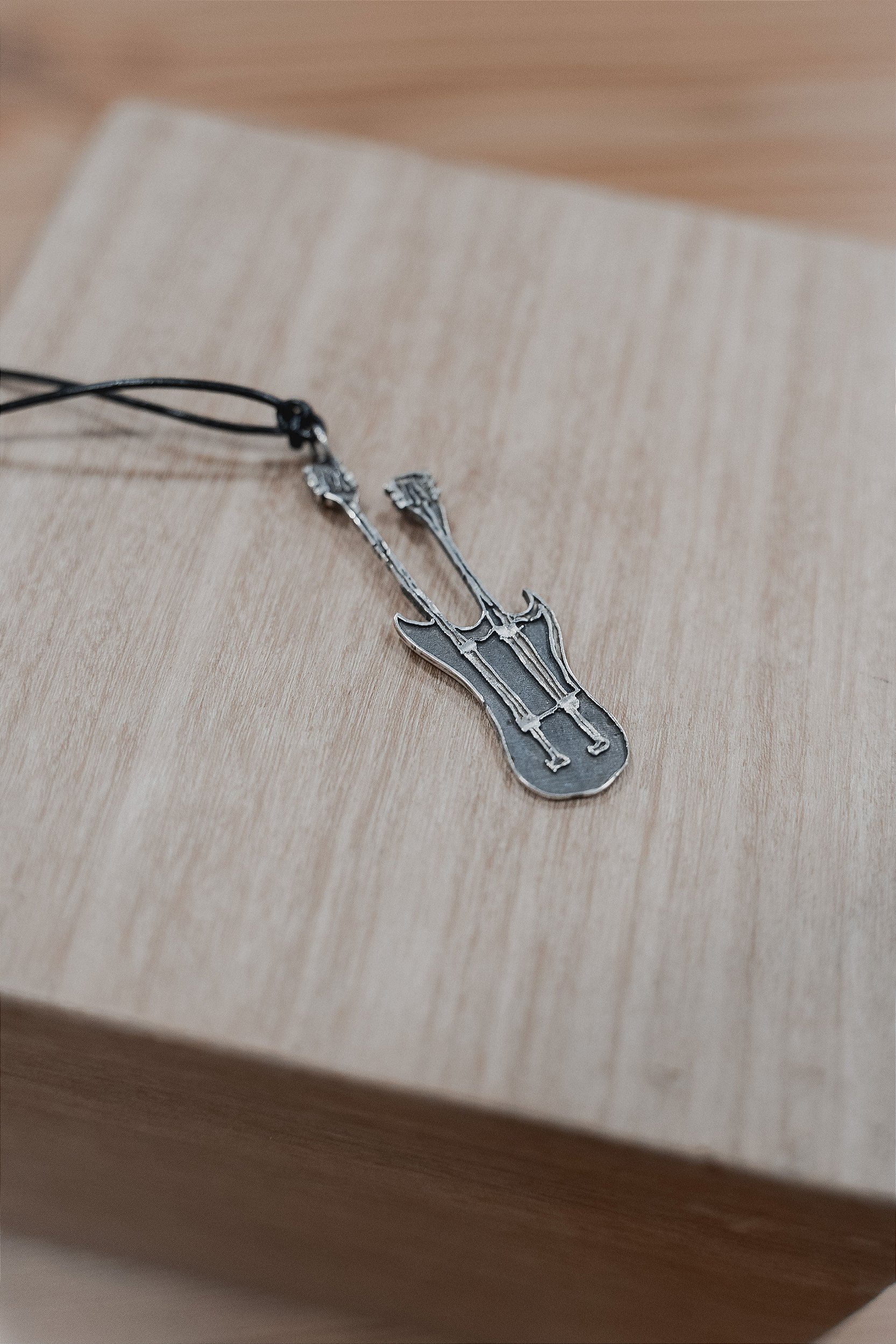 A designer de joias Veronica Santiago que fez seu primeiro trabalho com a ilustração do Vitor (Coração) gostou tanto do resultado que resolveu materializar em prata outra ilustração. Desta vez a guitarra, pois o Rock é uma grande paixão dele!